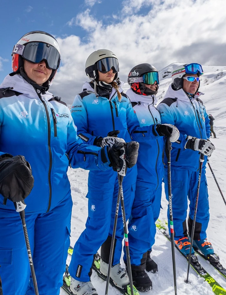 I nostri maestri di sci e snowboard, ogni anno seguono i corsi di aggiornamento, parlano almeno due lingue e hanno grande esperienza anche con i più piccoli. Serietà, entusiasmo e passione sono i nostri punti di forza conditi con una grande quantità di adattabilità perché ogni giorno dobbiamo avere a che fare con varie tipologie di clienti, dal bimbo principiante, all’atleta, allo sciatore esperto che chiede di migliorare la sua tecnica di Freeride.